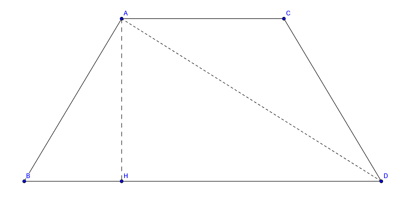 Traccia: Un trapezio isoscele ha la diagonale di 50 centimetri, l'altezza di 30 centimetri e la base maggiore di 56 centimetri. Trovare il perimetro del trapezio. [risposte: a) 120 cm; b) 130 cm; c) 148 cm; d) 150 cm]