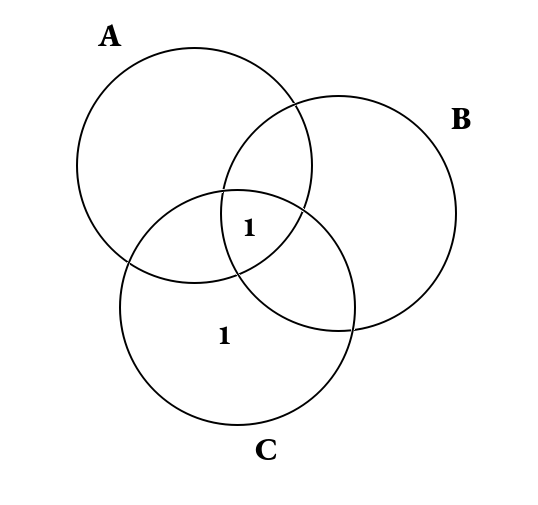 - nell'intersezione dei 3 insiemi (A ∩ B ∩ C) vi è 1 solo elemento;