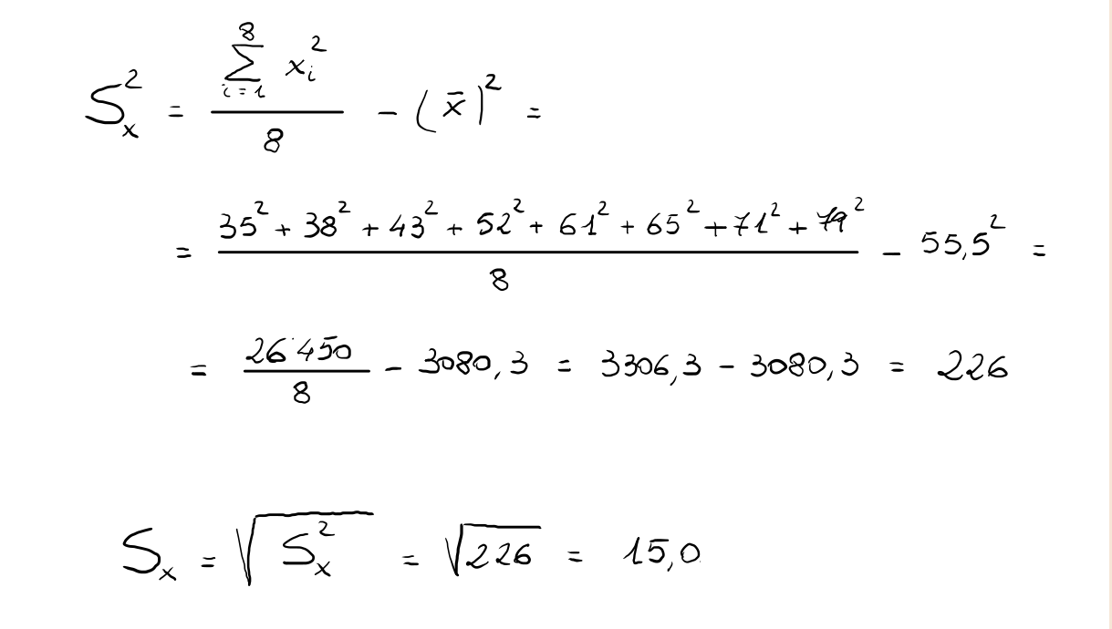 Si procede al calcolo delle deviazioni standard delle variabili X e Y: